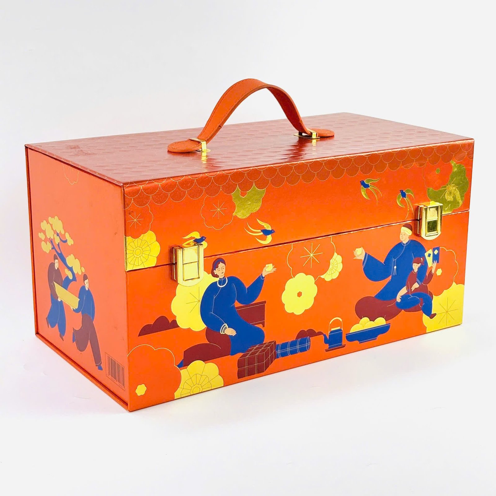 Bộ Quà Tết “Xuân Sum Vầy Premium 01” được thiết kế dạng vali cam 2 tầng, mang sắc cam ấm áp tượng trưng cho khởi đầu an lành và hy vọng mới. Toàn bộ bề mặt hộp được cán vân cao cấp, tạo cảm giác tinh tế khi chạm tay. Thiết kế trang nhã, hiện đại, phù hợp để biếu tặng gia đình, đối tác và những người trân quý trong mùa Tết.