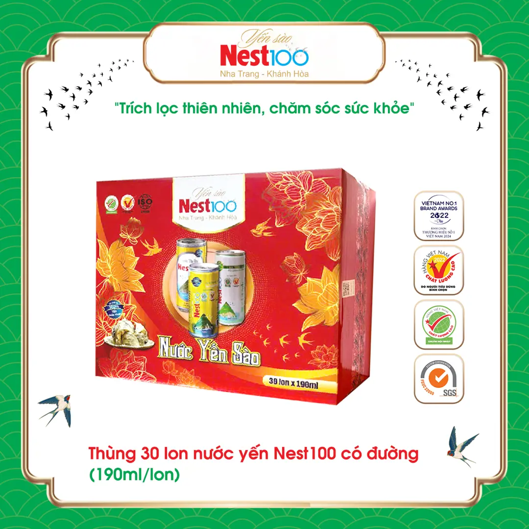 Nước Yến Sào cao cấp NEST100 được sản xuất từ yến sào, chứa nhiều acid amin và nguyên tố vi lượng cần thiết giúp Giải khát và làm mát cơ thể an toàn. Tăng cường sức khỏe, giảm căng thẳng, mệt mỏi.